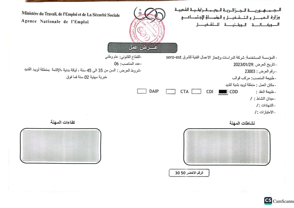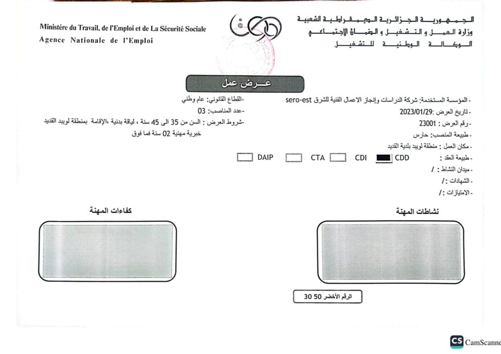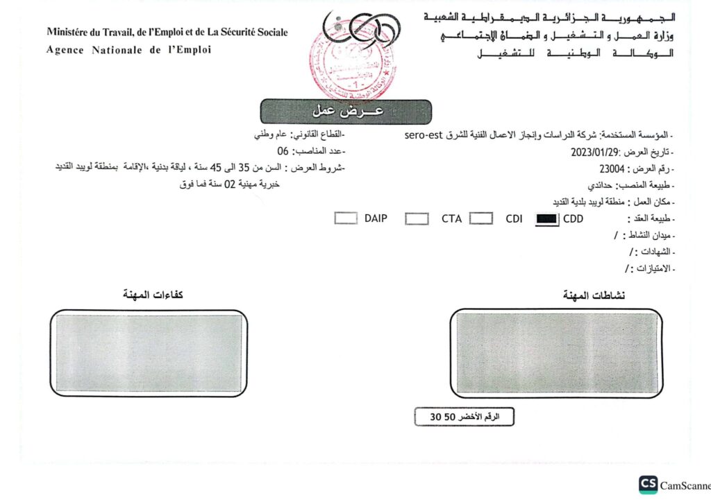 تعلن شركة الدراسات وانجاز الأعمال الفنية للشرق الجلفة عن فتح مناصب عمل متعددة