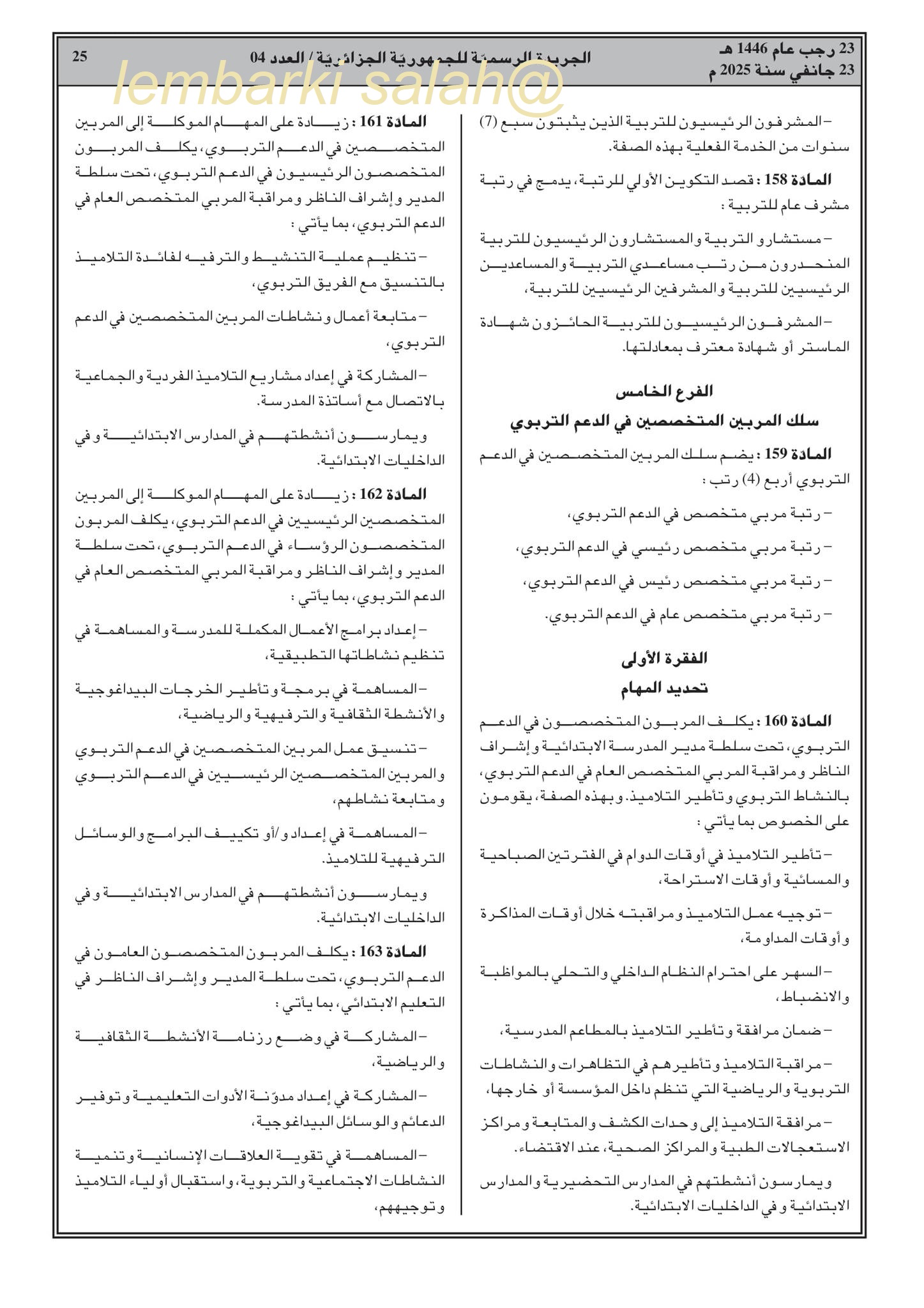 ولكن في 2025 خرج القرار الوزاري عبر الجريدة الرسمية الذي يخص التسوية النهائي لهده الفئة بتغيير كل ما يتعلق بفئة مشرف تربية ابتدائي من التسمية الى المهام الى المستوى المطلوب والترقية ، حيث تم تغيير المقررات المتعلقة بشرفتي التربية في الابتدائي حسب المستوى الذي تم ترسيمهم فيه ، وتغيير التسمية نهائيا الى مربي متخصص للدعم التربوي حسيت ان هذه الرتبة المستحدثة الجديدة تم الفصل بينها وبين مشرف تربية في كل ما يتعلق بهذه التربيتين ، مربي دعم  تربوي” وهي الرتبة القاعدية ثم يليها مربي دعم تربوي رئيسي ثم مربي دعم تربوي رئيس ثم مربي دعم تربوي عام.