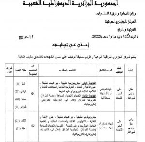 اعلان توظيف المركز الجزائري لمراقبة النوعية والرزم
