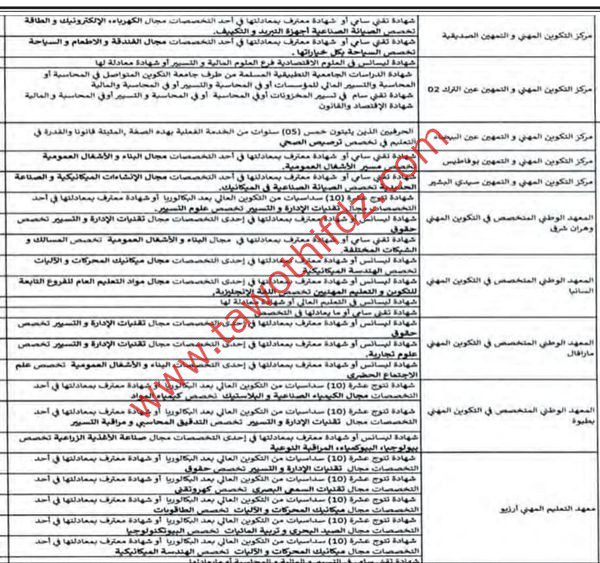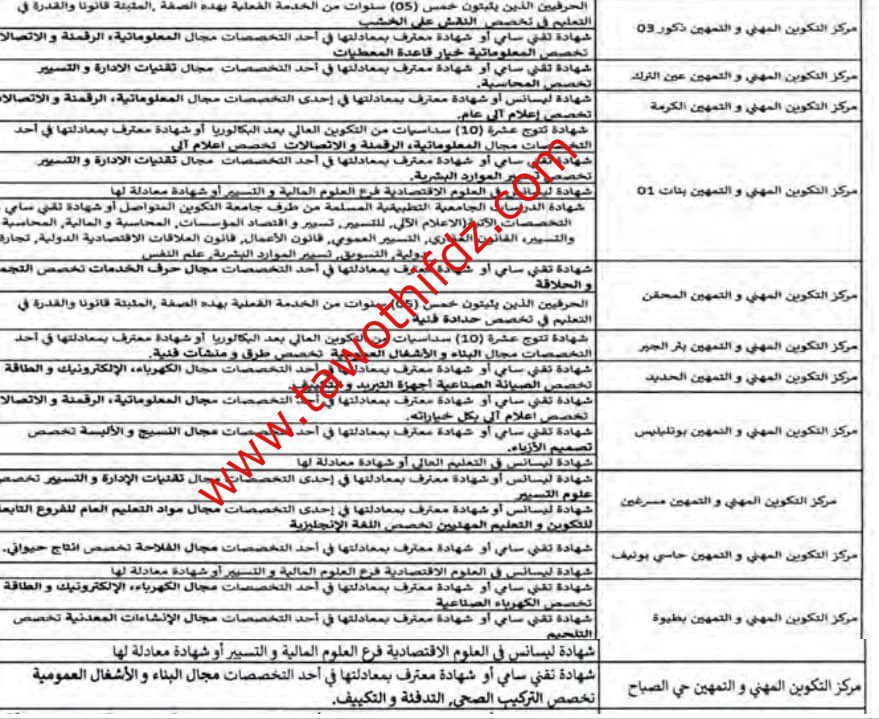 اعلان توظيف في جميع معاهد و مراكز تكوين مهني وهران اساتذة واداريين