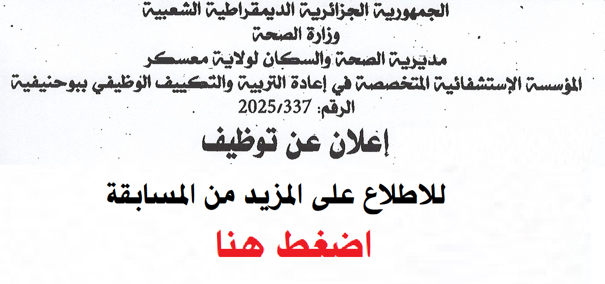 تعلن مديرية التجارة لولاية قالمة عن فتح باب التوظيف الخارجي للسنة المالية المسابقة تخص بعض الرتب الادارية المبينة في الاعلان ادناه ، المسابقة تخص بعض الرتب الادارية المبينة في الاعلان ادناه تابع باقي التفاصيل كاملة عبر الاعلان في الاسفل .