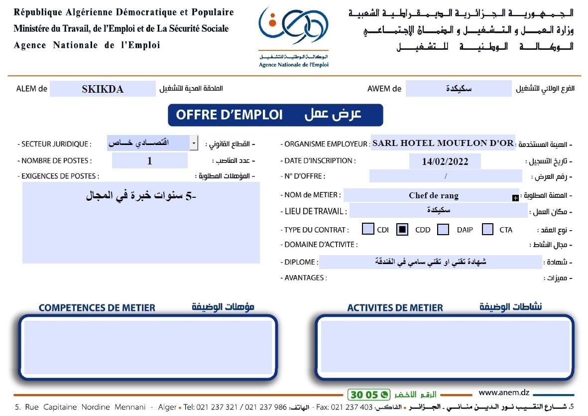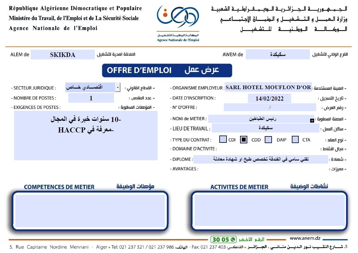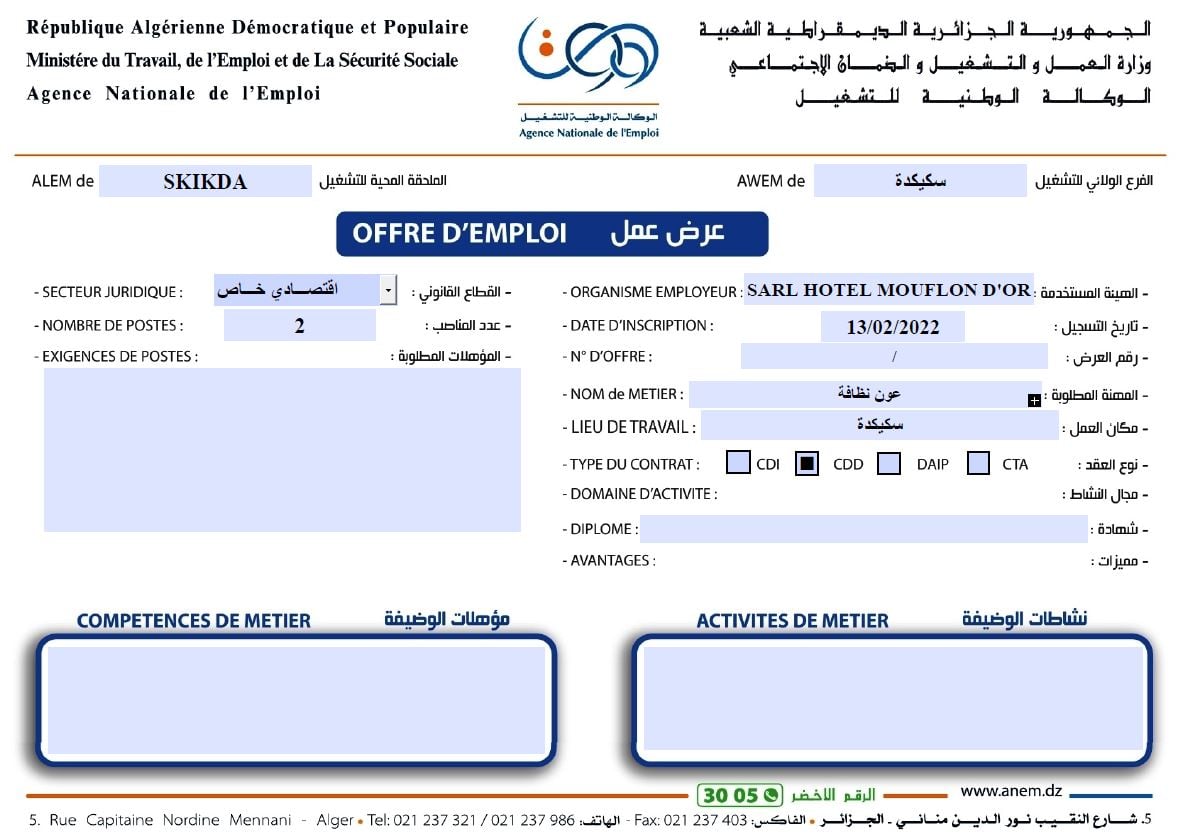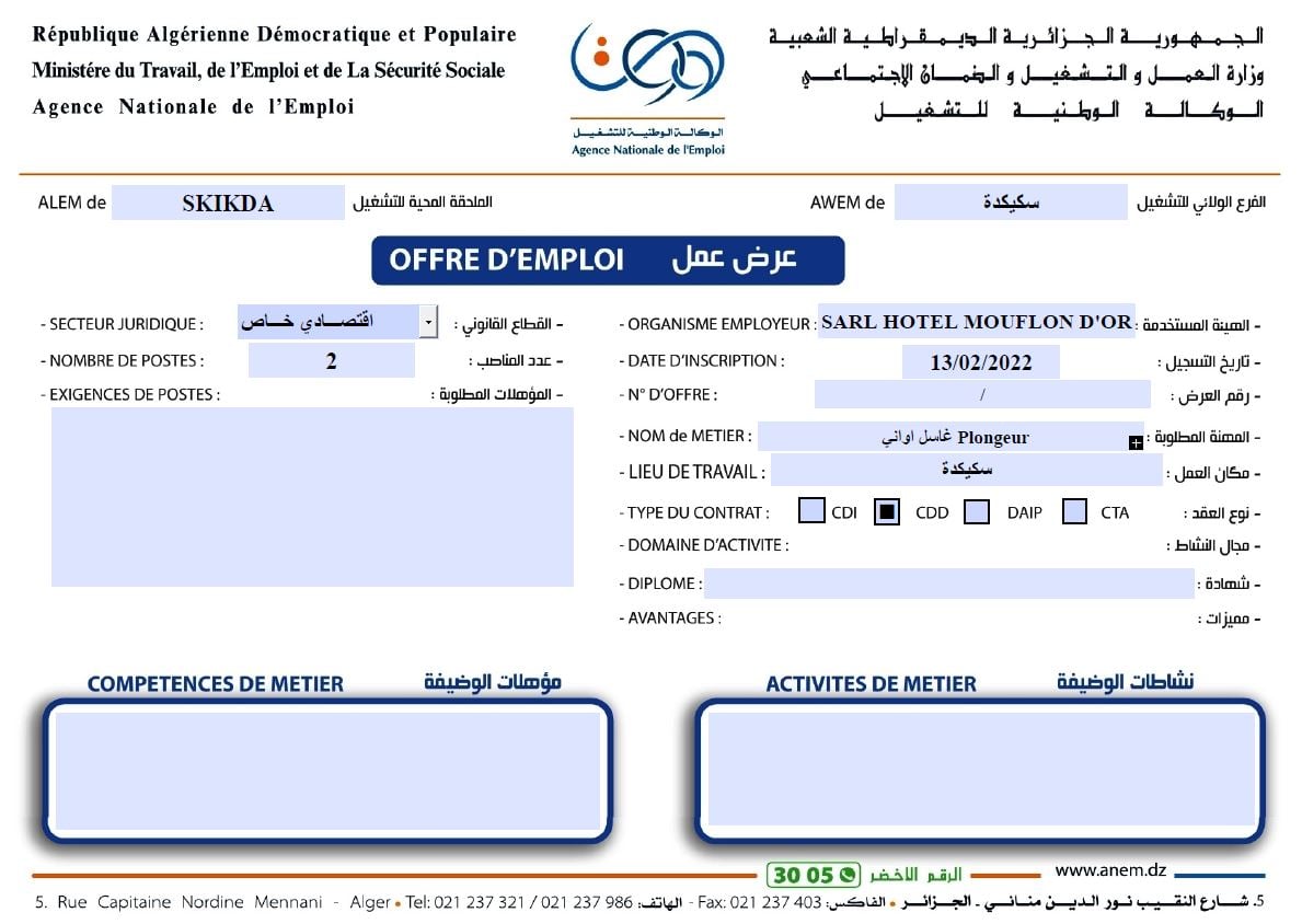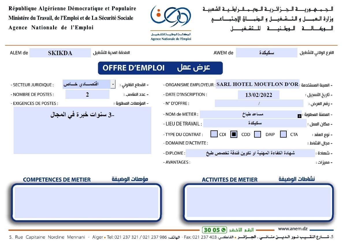 تقدم وكالة تشغيل سكيكدة مجموعة عروض عمل ، عبر الوكالة المحلية للتشغيل سكيكدة ، لشهر فيفري ، العروض يتم معالجتها عبر نظام الوسيط ، ولمن تتوفر فيه الشروط المعينة يمكنه التقرب لوكالة التشغيل لمزيد من المعلومات