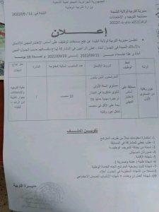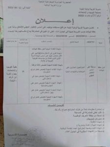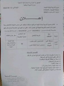 تعلن مديرية التربية لولاية البليدة ، عن تنظمي مسابقة في بعض الاسلاك الادارية والمهنية ، لشهر سبتمير 2022، المسابقة على اساس الشهادة وعلى اساس الامتحان المهني .