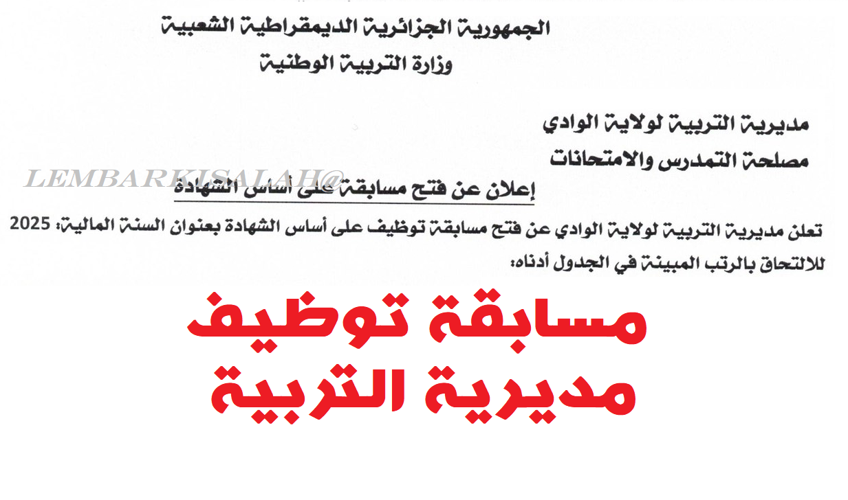 توظيف مديرية التربية علن مديرية التربية لولاية الوادي عن فتح باب التوظيف على مستRead More…