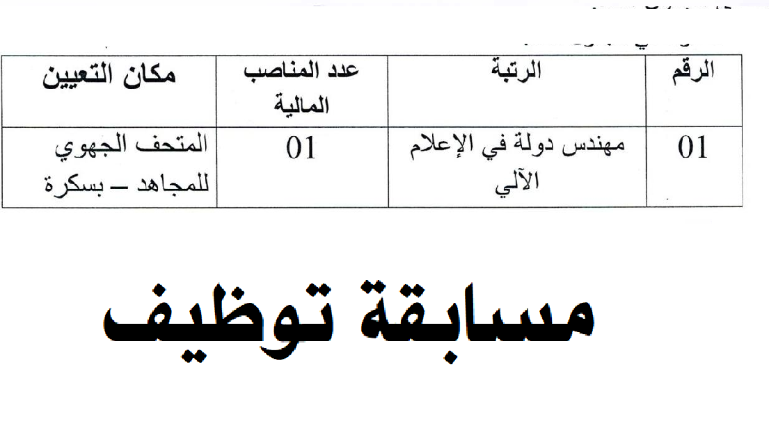 توظيف متحف المجاهد المسابقة على اساس الشهادة يعني دراسة ملفات المترشحين وفق معRead More…